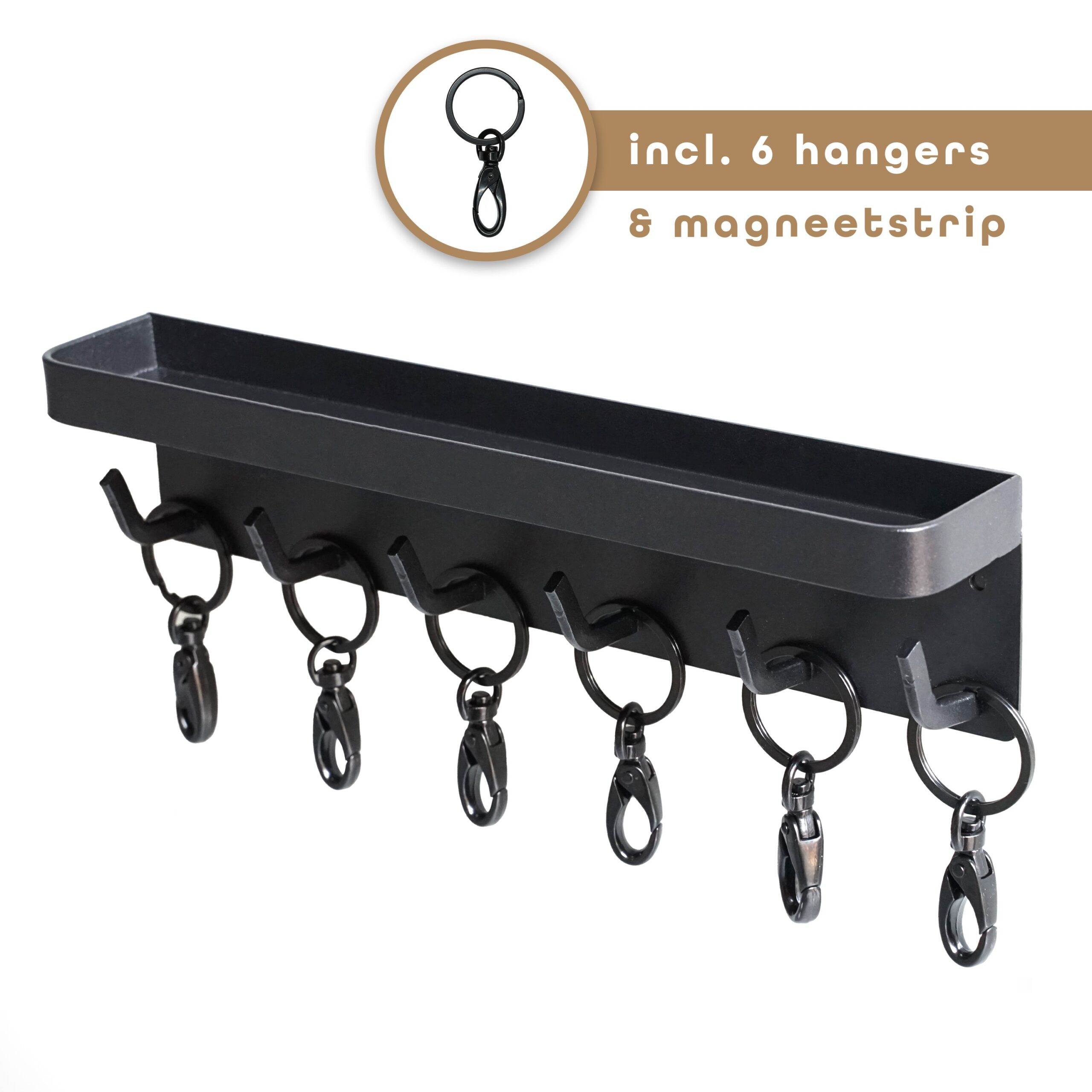 Sleutelrekje zwart met 6 sleutelhangers